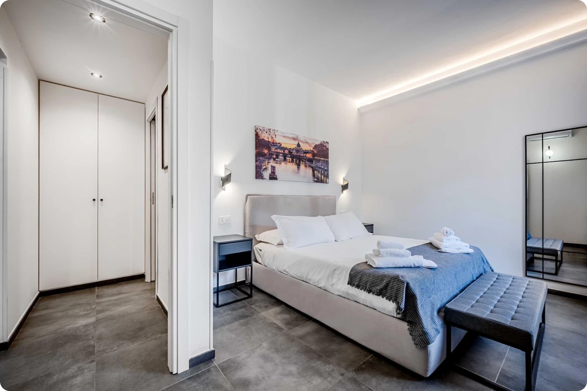 Situato in una tranquilla via privata, l’appartamento garantisce un ambiente sereno e riservato. Approfittane dello spazio ampio e del comfort di questo elegante appartamento per rendere il vostro soggiorno a Roma davvero speciale.