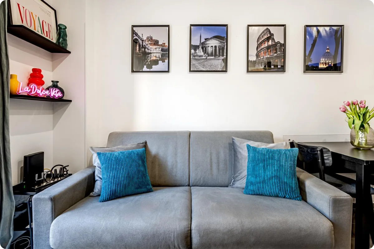 L’appartamento è arredato con uno stile contemporaneo, studiato per offrire ambienti funzionali e accoglienti, perfetti per rilassarsi dopo una giornata trascorsa tra arte, cultura e passeggiate in città.